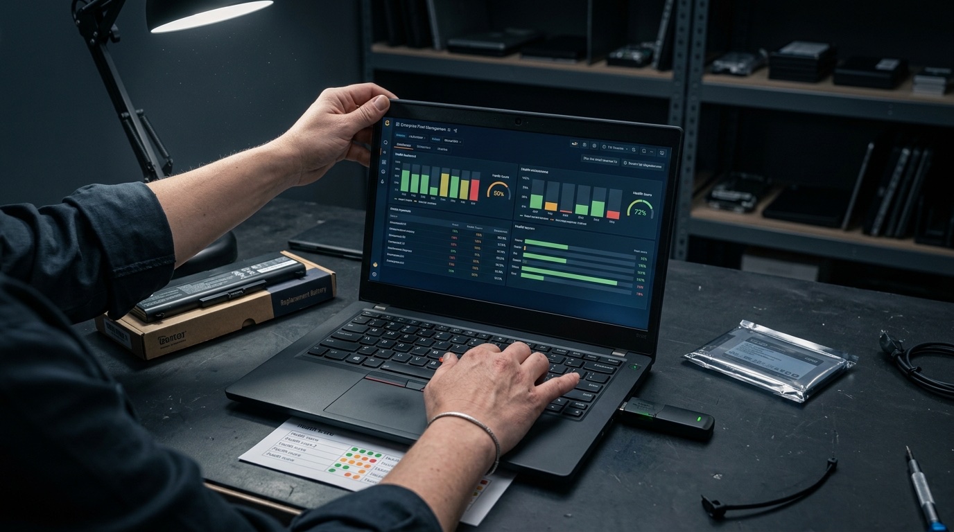 Complete battery health diagnostic for enterprise fleetsFleets that skip battery-level diagnostics leave the cheapest ROI on the table: at 80-150 euros per swap versus 800-1,500 euros for a new device, every missed repair is a 10:1 return forfeited (Dell / Lenovo, 2025). By 2027, predictive battery scoring alone is projected to defer 15-20% of full replacements in enterprise fleets — turning a minor maintenance line into a strategic budget lever.